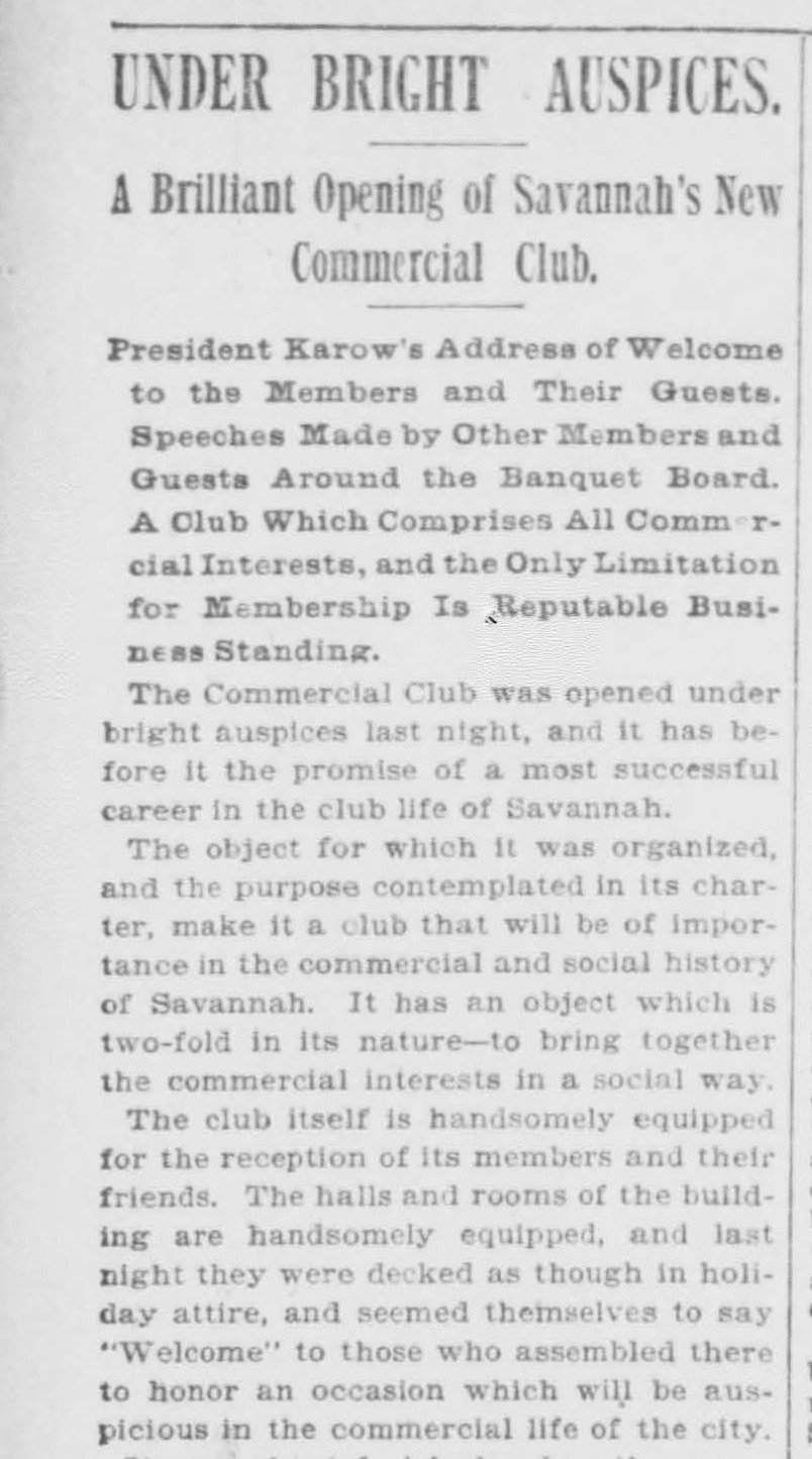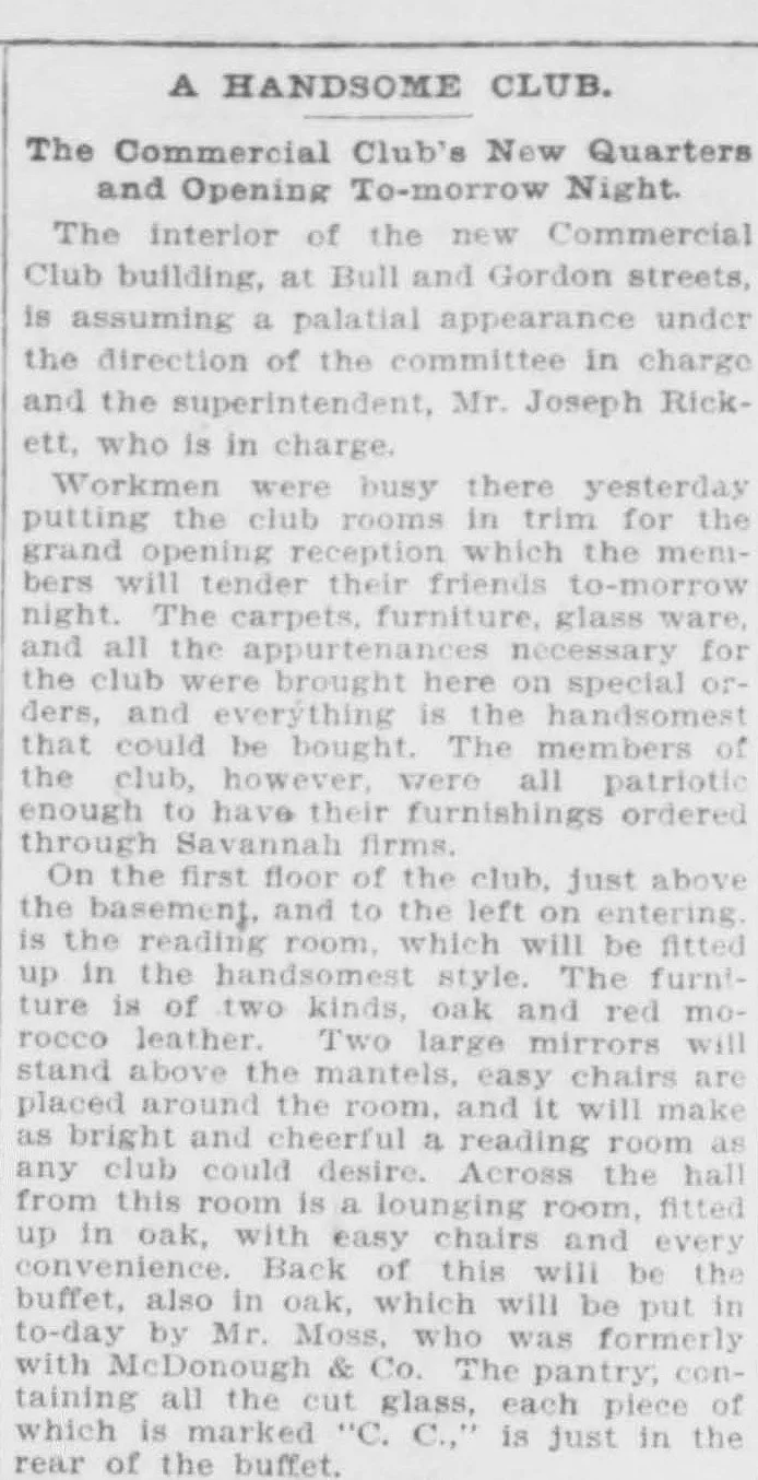 An article in the Savannah Morning News from the club’s opening indicates that “the rooms with the exception of the moveable furnishings were just as Mr. Weil left them.”